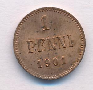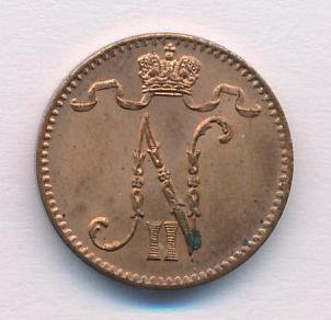 Лицевая сторона — вензель Александра II, оборотная — номинал (1 PENNIA) и дата. Нормативный вес — 1,28 грамма, гурт гладкий.