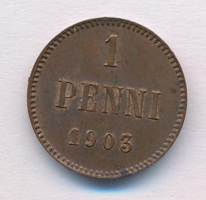 Лицевая сторона — вензель Александра II, оборотная — номинал (1 PENNIA) и дата. Нормативный вес — 1,28 грамма, гурт гладкий.