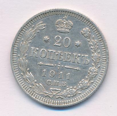 Лицевая сторона — гербовый орел, оборотная —обозначение номинала (20 копеекъ), окруженное венком из лавровой и дубовой ветвей и дата.