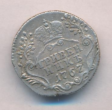 Лицевая сторона — портрет императрицы и надпись «Б М ЕКАТЕРИНА II IМП I САМОД ВСЕРОС», оборотная — обозначение номинала (гривенникъ) и дата. Проба — 750, нормативный вес — 2,37 грамма, гурт — шнур.