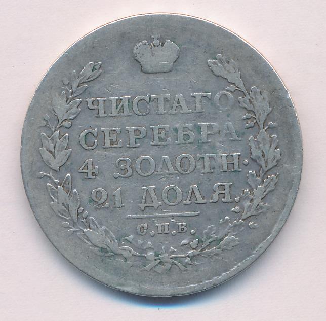 Манифест от 20 июня 1810 года «О новом устройстве монетной системы» устанавливает серебряный рубль законной мерой всех расчетов. Банковые монеты — рубли и полтины — изменяют свой внешний вид. Броская надпись внутри венка на оборотной стороне указывает содержание чистого серебра в монете, а номинал занимает скромное место вокруг орла. Гуртовая надпись сообщает о пробе и лигатурном весе.