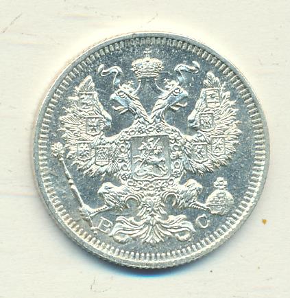 Лицевая сторона — гербовый орел, оборотная —обозначение номинала (20 копеекъ), окруженное венком из лавровой и дубовой ветвей и дата.