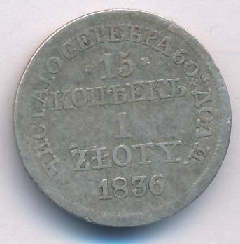 Указом от 15 октября 1832 года «для удобства торговых сношений» Николай I добавляет в ряд серебряных монет новый номинал — 15 копеек, соответствующий одному польскому злотому. Указом от 1 мая 1834 года разрешается чеканка всех номиналов Варшавскому двору. Для организации штемпельного производства из Петербурга 19 июня того же года высылаются рисунки, четыре пары штемпелей и четыре образцовых монеты.