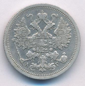 Лицевая сторона — гербовый орел, оборотная —обозначение номинала (15 копеекъ), окруженное венком из лавровой и дубовой ветвей и дата.