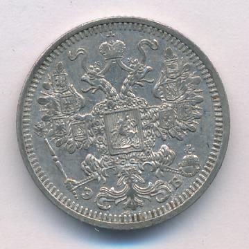 Лицевая сторона — гербовый орел, оборотная —обозначение номинала (15 копеекъ), окруженное венком из лавровой и дубовой ветвей и дата.
