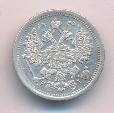Лицевая сторона — гербовый орел, оборотная —обозначение номинала (15 копеекъ), окруженное венком из лавровой и дубовой ветвей и дата.