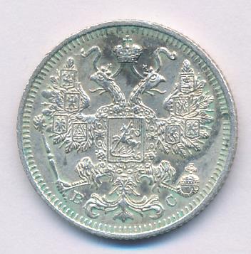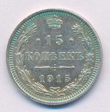 Лицевая сторона — гербовый орел, оборотная —обозначение номинала (15 копеекъ), окруженное венком из лавровой и дубовой ветвей и дата.
