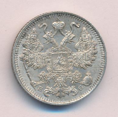 Лицевая сторона — гербовый орел, оборотная —обозначение номинала (15 копеекъ), окруженное венком из лавровой и дубовой ветвей и дата.