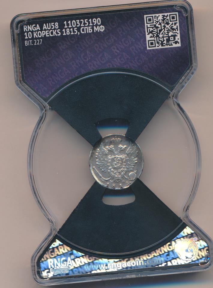Лицевая сторона - двуглавый орел и дата, оборотная — обозначение номинала (10 копеекъ) в венке из лавровой и дубовой ветвей. Проба до 1813 года — 750, нормативный вес — 2,40 грамма; после 1813 года — проба 868, нормативный вес — 2,07 грамма.