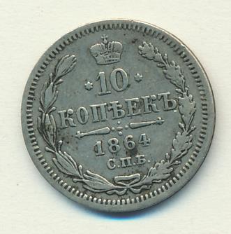 Лицевая сторона — гербовый орел, оборотная —обозначение номинала (10 копеекъ), окруженное венком из лавровой и дубовой ветвей и дата.