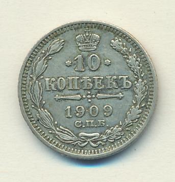 Лицевая сторона — гербовый орел, оборотная —обозначение номинала (10 копеекъ), окруженное венком из лавровой и дубовой ветвей и дата.