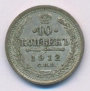 Лицевая сторона — гербовый орел, оборотная —обозначение номинала (10 копеекъ), окруженное венком из лавровой и дубовой ветвей и дата.