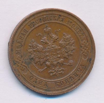 Лицевая сторона — двуглавый орел, надпись МЕДНАЯ РОССIЙСКАЯ МОНЕТА и обозначение номинала (одна копейка); оборотная — обозначение номинала (1 копейка) в бусовом ободке и дата. Нормативный вес — 3,28 грамма, гурт рубчатый.