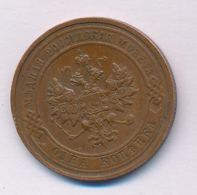 Лицевая сторона — двуглавый орел, надпись МЕДНАЯ РОССIЙСКАЯ МОНЕТА и обозначение номинала (одна копейка); оборотная — обозначение номинала (1 копейка) в бусовом ободке и дата. Нормативный вес — 3,28 грамма, гурт рубчатый.