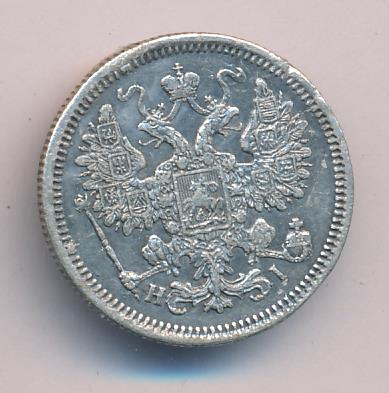 Лицевая сторона — гербовый орел, оборотная —обозначение номинала (15 копеекъ), окруженное венком из лавровой и дубовой ветвей и дата.