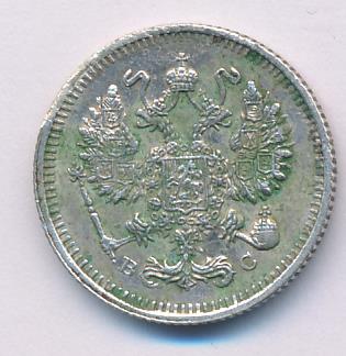 Лицевая сторона — гербовый орел, оборотная —обозначение номинала (10 копеекъ), окруженное венком из лавровой и дубовой ветвей и дата.