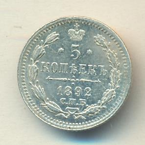 Лицевая сторона — гербовый орел, оборотная —обозначение номинала (5 копеекъ), окруженное венком из лавровой и дубовой ветвей и дата.