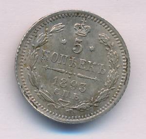 Лицевая сторона — гербовый орел, оборотная —обозначение номинала (5 копеекъ), окруженное венком из лавровой и дубовой ветвей и дата.