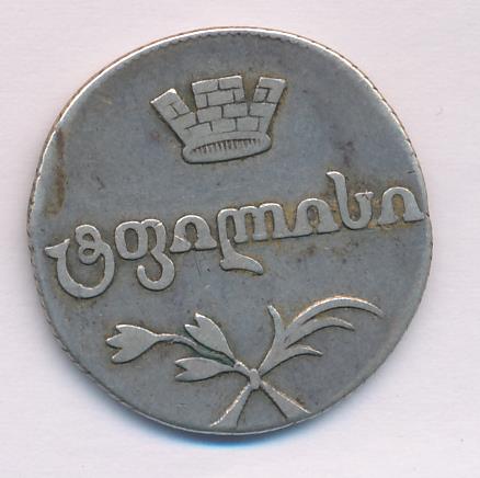 Надпись под короной на лицевой стороне переводится как «Тбилиси». Надпись под цифрой номинала на оборотной стороне серебряных монет - «грузинское серебро», медных монет - «грузинские деньги».