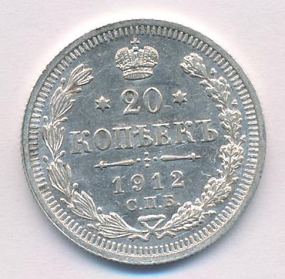 Лицевая сторона — гербовый орел, оборотная —обозначение номинала (20 копеекъ), окруженное венком из лавровой и дубовой ветвей и дата.