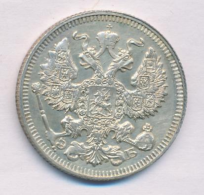 Лицевая сторона — гербовый орел, оборотная —обозначение номинала (20 копеекъ), окруженное венком из лавровой и дубовой ветвей и дата.