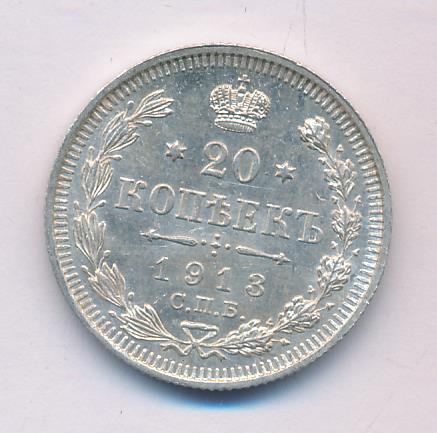 Лицевая сторона — гербовый орел, оборотная —обозначение номинала (20 копеекъ), окруженное венком из лавровой и дубовой ветвей и дата.