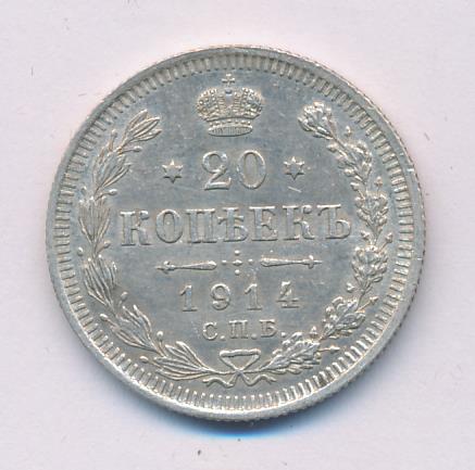 Лицевая сторона — гербовый орел, оборотная —обозначение номинала (20 копеекъ), окруженное венком из лавровой и дубовой ветвей и дата.