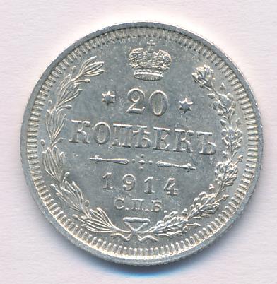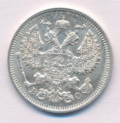 Лицевая сторона — гербовый орел, оборотная —обозначение номинала (20 копеекъ), окруженное венком из лавровой и дубовой ветвей и дата.