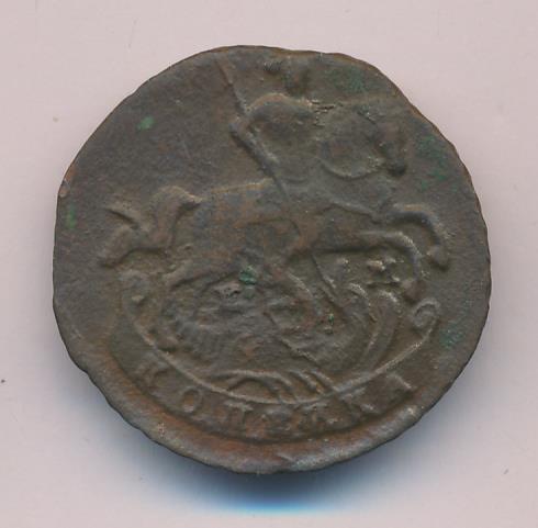Лицевая сторона — Георгий Победоносец и обозначение номинала (копейка) в картуше, оборотная — вензель Екатерины II и дата. Нормативный вес — 10,24 грамма, гурт — сетка, или узор, или шнур.