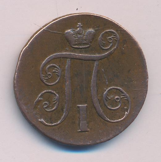 Лицевая сторона — вензель Павла I под короной, оборотная — номинал (1 копейка) и дата. Нормативный вес — 10,24 грамма, гурт — шнур.