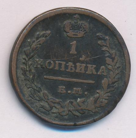 Лицевая сторона — двуглавый орел и дата; оборотная - номинал (1 копейка) в венке из лавровой и дубовой ветвей. Нормативный вес — 6,83 грамма, гурт — гладкий или шнур.