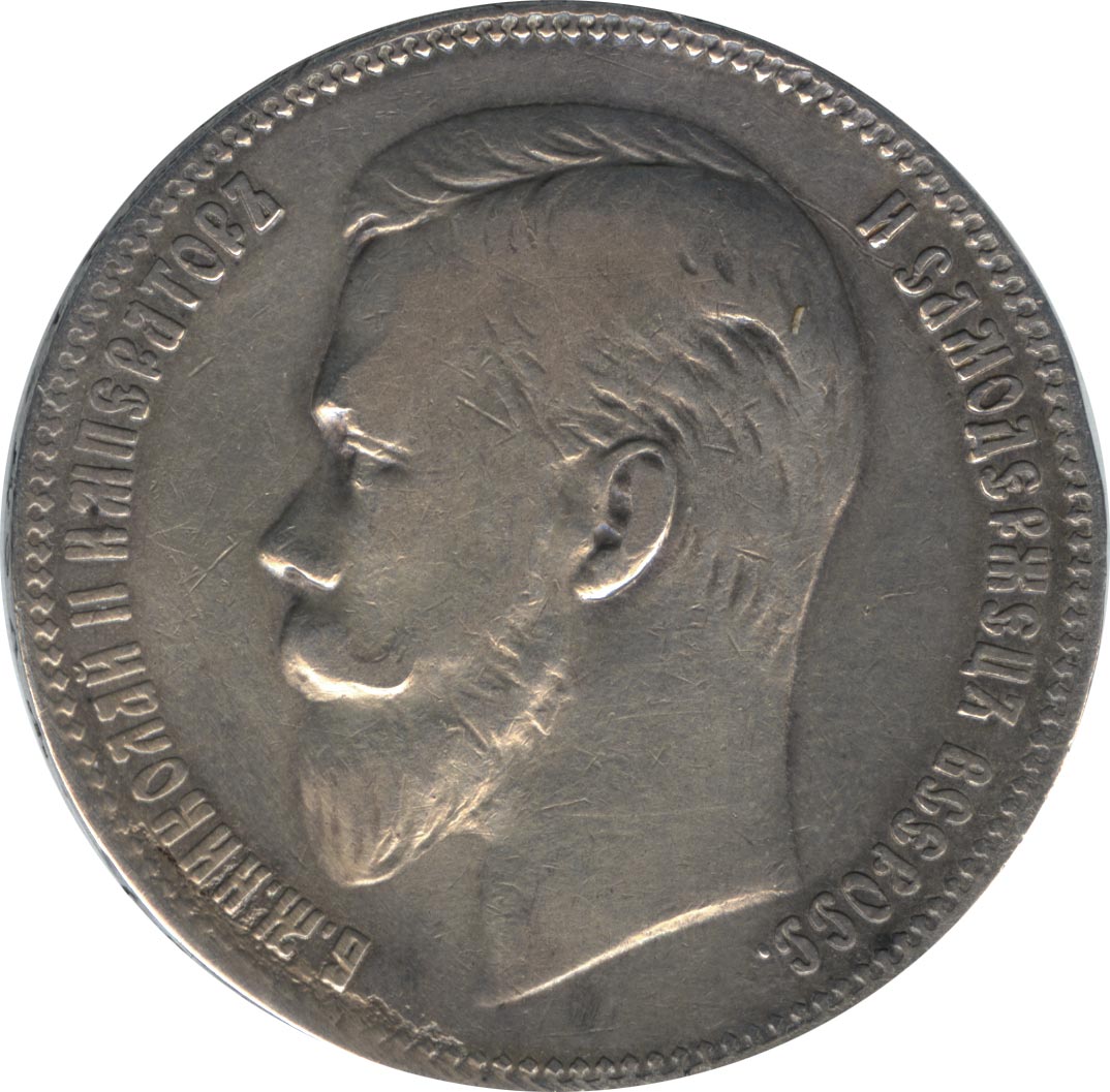 Николай II сохраняет принятый отцом тип, но на банковских монетах его портрет (работы Васютинского) повернут влево (на запад). На оборотной стороне сохраняется тот же герб, вплоть до знака АГ под задней ногой коня.