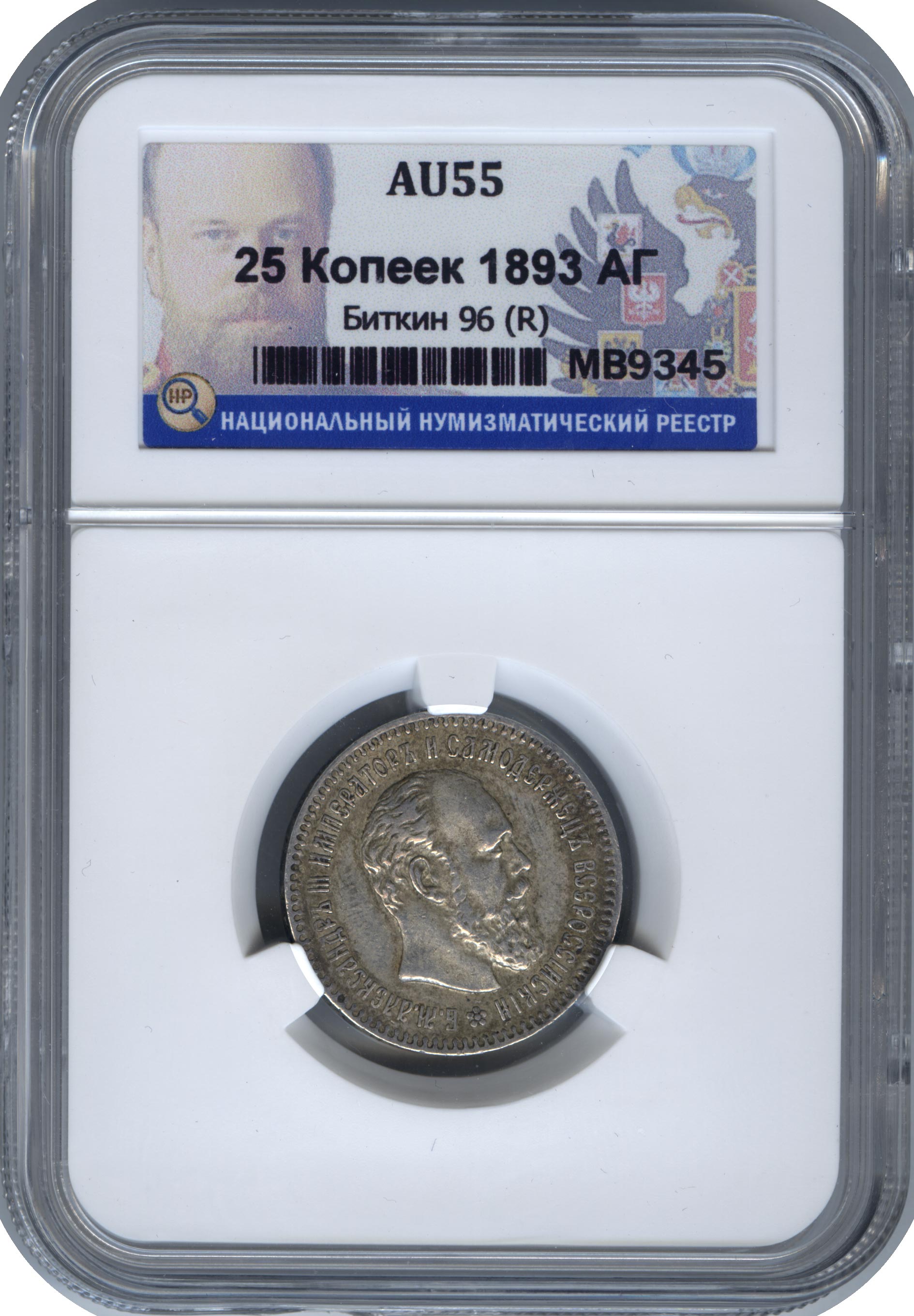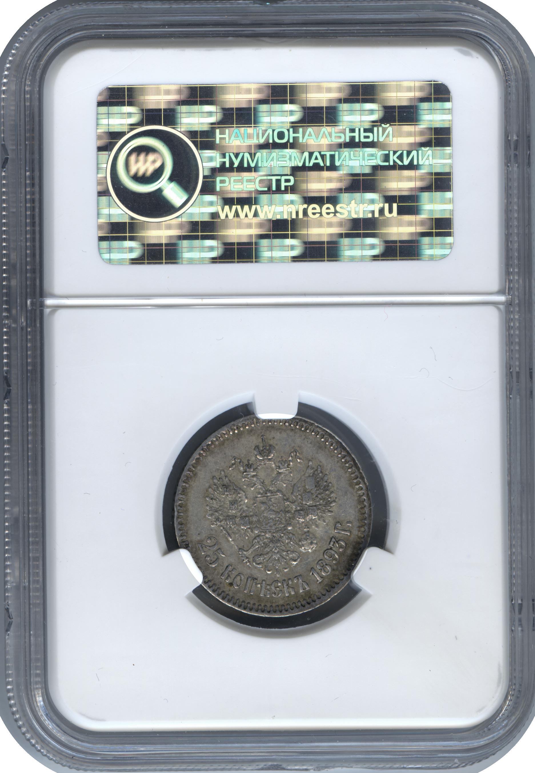 Лицевая сторона — портрет Александра III в круговой надписи «Б.М.АЛЕКСАНДРЪ III ИМПЕРАТОРЪ И САМОДЕРЖЕЦЪ ВСЕРОССIЙСКIЙ», оборотная — двуглавый орел, обозначение номинала (25 копеекъ) и дата.