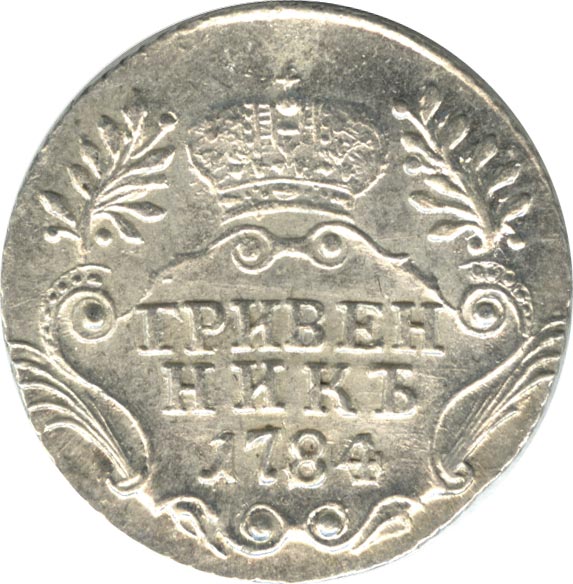 Выделяют два типа - «шея длиннее» и «шея короче». Лицевая сторона — портрет императрицы и надпись «Б М ЕКАТЕРИНА II IМП И САМОД ВСЕРОСС», оборотная — обозначение номинала (гривенникъ) и дата. Проба — 750, нормативный вес — 2,37 грамма, гурт — шнур.