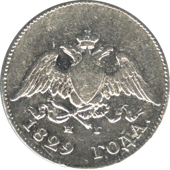 Указом от 1 июля 1826 года Николай I сохраняет вес и пробу золотых и серебряных монет, но приводит к единообразию их внешний вид. На серебряные монеты, вслед за золотыми, помещается новый герб - так называемый «масонский» орел с опущенными крыльями, на груди которого московский герб, в лапах факелы, лавровый венок, ликторский пучок и лента, без корон на головах. См. статью «Масонский орел» на сайте «Конрос».