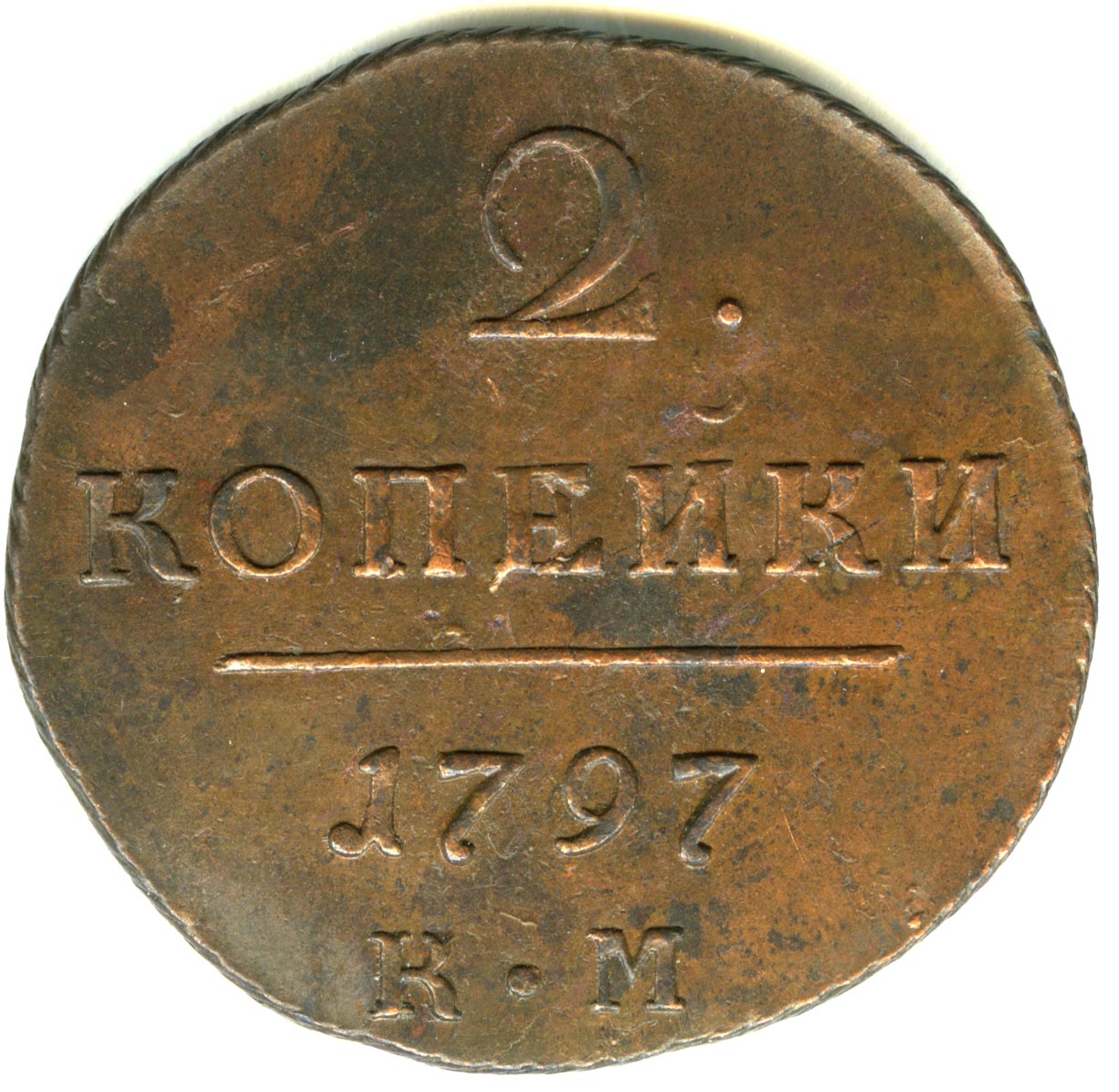 Лицевая сторона — вензель Павла I под короной, оборотная — номинал (2 копейки) и дата. Нормативный вес — 20,48 грамма, гурт — шнур.