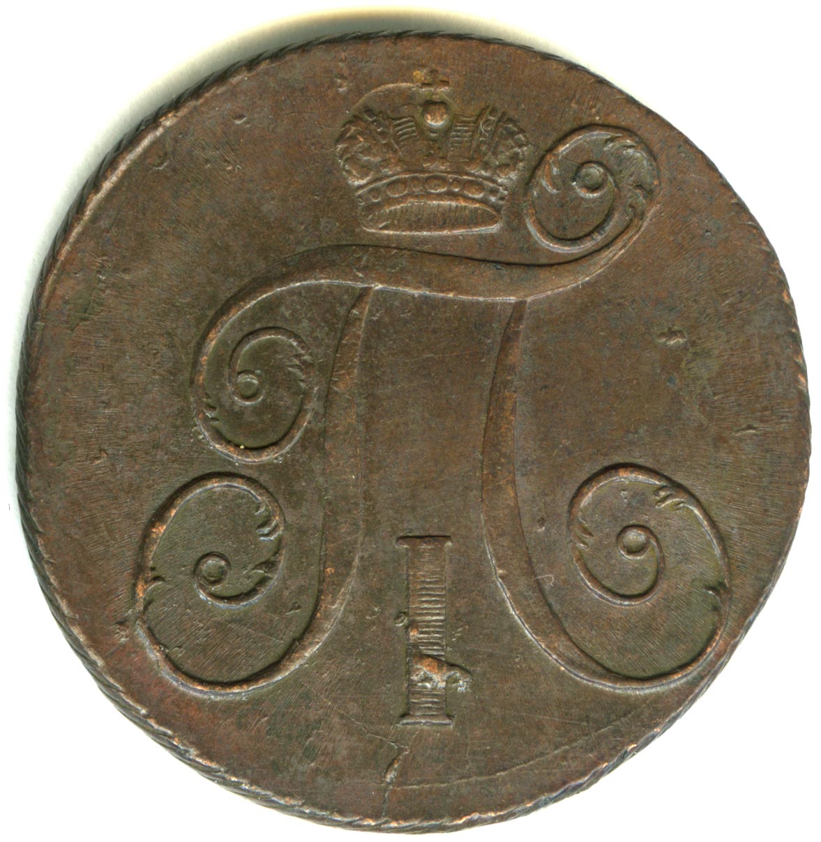 Лицевая сторона — вензель Павла I под короной, оборотная — номинал (2 копейки) и дата. Нормативный вес — 20,48 грамма, гурт — шнур.