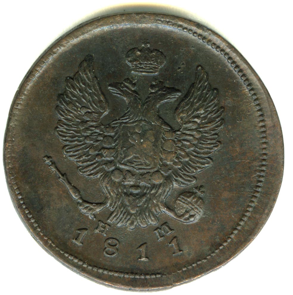 Манифестом от 29 августа 1810 года для медных монет всех номиналов стопа увеличивается в полтора раза и становится 24 рубля из пуда. В следующие два десятилетия по этой норме чеканятся только двухкопеечники, копейки и деньги, призванные ликвидировать нехватку разменной монеты. В оформлении монет вместо кольцевых ободков на оборотной стороне размещается венок из лавровой и дубовой ветвей, как на серебряной монете.