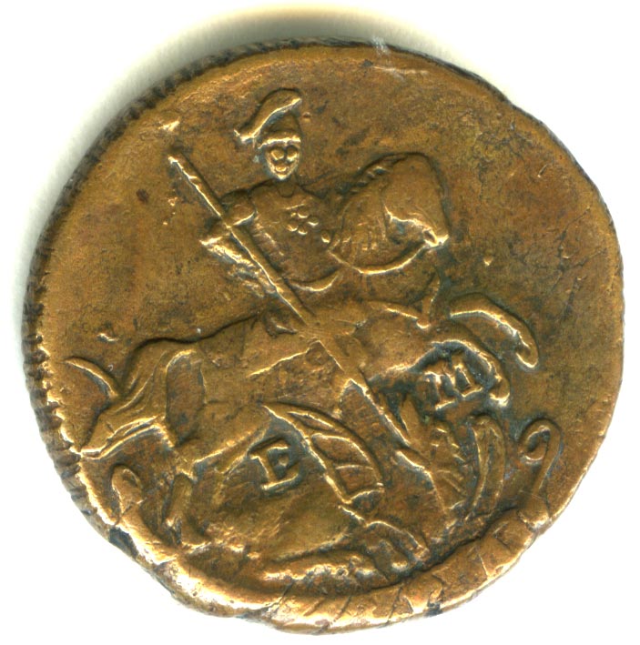 Лицевая сторона — Георгий Победоносец и обозначение номинала (денга) в картуше, оборотная — вензель Екатерины II и дата. Нормативный вес — 5,12 грамма, гурт рубчатый или шнур.