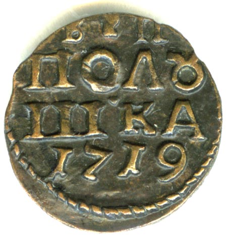 Указом от 27 февраля 1718 года предписывается делать из меди только полушки по стопе 40 рублей из пуда «против поданных образцовых резного штемпельного дела мастера Федора Подуруя». Для затруднения подделки монеты предполагалось делать улучшенного оформления и с гуртиками. Однако эти меры реализованы не были, и вскоре фальшивки заполнили рынок ( при изъятии полушек в 1730-х годах дворы отчитывались о наличии среди них до 40% подделок).