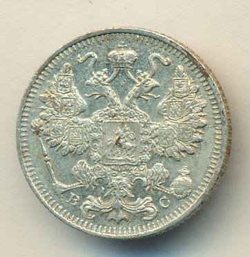 Лицевая сторона — гербовый орел, оборотная —обозначение номинала (15 копеекъ), окруженное венком из лавровой и дубовой ветвей и дата.