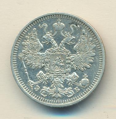 Лицевая сторона — гербовый орел, оборотная —обозначение номинала (15 копеекъ), окруженное венком из лавровой и дубовой ветвей и дата.