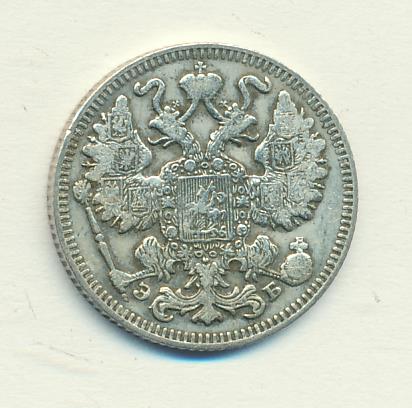 Лицевая сторона — гербовый орел, оборотная —обозначение номинала (15 копеекъ), окруженное венком из лавровой и дубовой ветвей и дата.