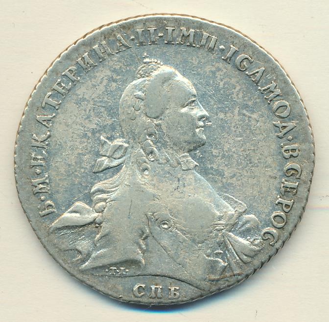 Лицевая сторона — портрет императрицы и надпись «Б М ЕКАТЕРИНА II IМП I САМОД ВСЕРОС», оборотная — двуглавый орел и надпись «МОНЕТА РУБЛЬ» и дата. Проба — 750, нормативный вес — 24 грамма, гурт — шнур.