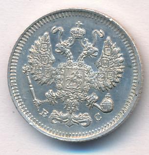 Лицевая сторона — гербовый орел, оборотная —обозначение номинала (10 копеекъ), окруженное венком из лавровой и дубовой ветвей и дата.