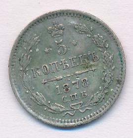 Лицевая сторона — гербовый орел, оборотная —обозначение номинала (5 копеекъ), окруженное венком из лавровой и дубовой ветвей и дата.