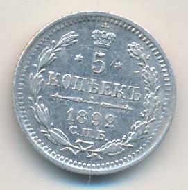 Лицевая сторона — гербовый орел, оборотная —обозначение номинала (5 копеекъ), окруженное венком из лавровой и дубовой ветвей и дата.