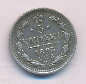 Лицевая сторона — гербовый орел, оборотная —обозначение номинала (5 копеекъ), окруженное венком из лавровой и дубовой ветвей и дата.