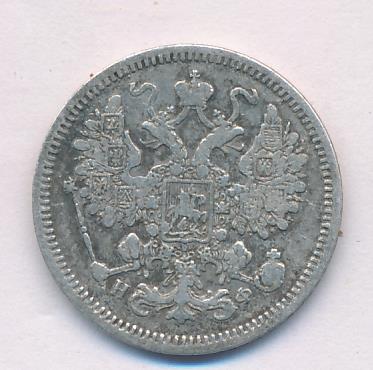 Лицевая сторона — гербовый орел, оборотная —обозначение номинала (15 копеекъ), окруженное венком из лавровой и дубовой ветвей и дата.