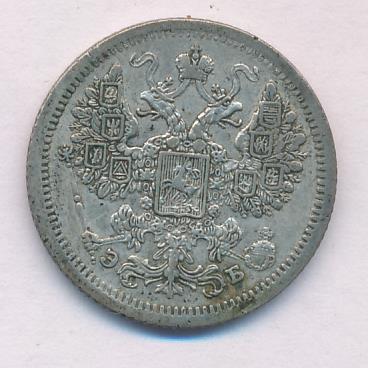 Лицевая сторона — гербовый орел, оборотная —обозначение номинала (15 копеекъ), окруженное венком из лавровой и дубовой ветвей и дата.